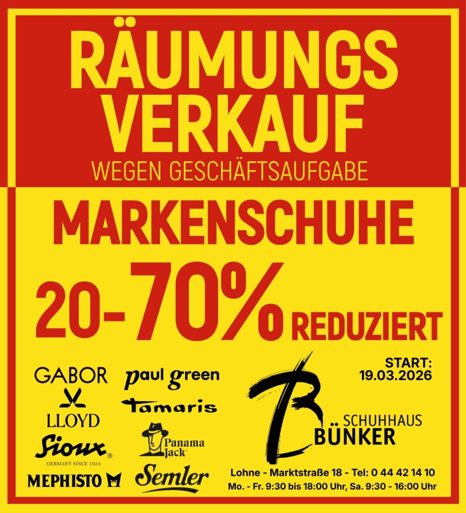 Es gibt Momente, in denen sich für Kundinnen und Kunden eine seltene Gelegenheit ergibt. Genau so ein Moment ist jetzt bei Schuhhaus Bünker gekommen: Ein großer Räumungsverkauf bringt hochwertige Markenschuhe zu deutlich reduzierten Preisen.