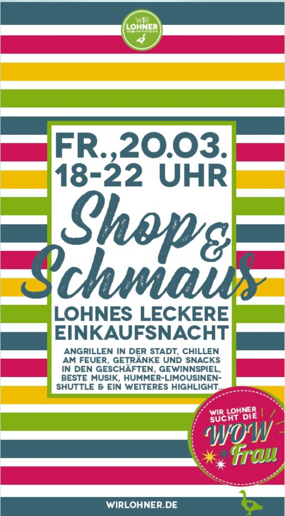 Am Freitag, den 20.03., von 18 bis 22 Uhr lädt die Innenstadt von Lohne zur besonderen Einkaufsnacht „Shop & Schmaus“ ein. Auch das Schuhhaus Bünker ist mit dabei und verbindet an diesem Abend entspanntes Einkaufen mit Genuss, Musik und guter Stimmung.